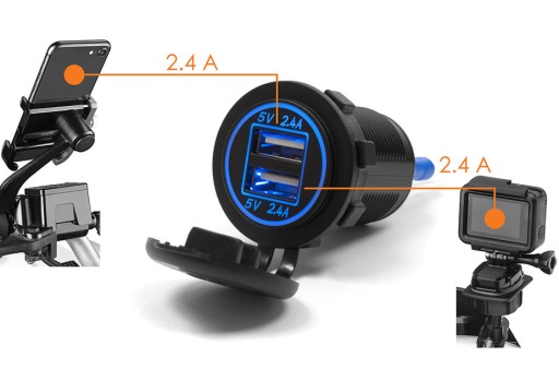 Motocyklowe gniazdo 2 x USB 2x2.4 A