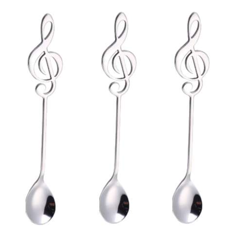 - Metalowe łyżeczki z rączką w kształcie klucza wiolinowego