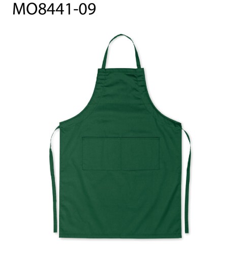 Fartuch kuchenny z dwiema kieszeniami na przodzie. Materiał o gramaturze190 gr/m², skład: 10% bawełna, 90% poliester. Regulowana wysokość.Wykonane zgodnie z certyfikowanym standardem dotyczącym stosowaniaszkodliwych substancji w tekstyliach.