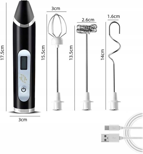 Akumulatorowy elektryczny spieniacz do mleka z trzystopniową regulacją prędkości oraz wyświetlaczem LCD