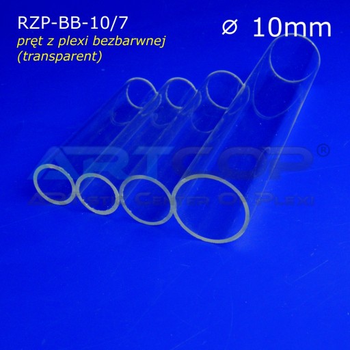 Rura z plexi bezbarwnej, transparentnej o średnicy zewnętrznej 10mm i średnicy wewnętrznej 7mm. Grubość ścianki rury to 1,5mm.