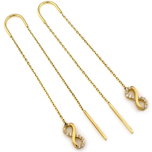 Delikatne wiszące kolczyki z nieskończonością wykonane ze złota próby 585 są idealnym uzupełnieniem każdej stylizacji, a tym samym pasują na każdą okazję: na komunię, jako prezent urodzinowy, na wieczorne wyjście, do pracy czy do szkoły. Chętnie są noszone zarówno przez kobiety dorosłe, ceniące subtelność i delikatność, jak i nastolatki.