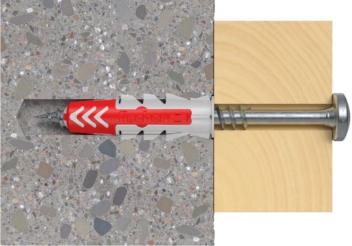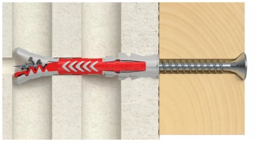 - Zwiększona głębokość kotwienia, w przypadku kołków DUOPOWER 6 x 50, 8 x 65 oraz 10 x 80 oznacza, że kołek szczególnie dobrze nadaje się do mocowania w pustakach, gazobetonie oraz do ścian otynkowanych.