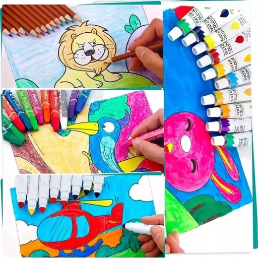 Bogaty zestaw kredek i farb wyróżniający się różnorodnością kolorów. Idealna alternatywa dla rodziców dbających o rozwój swoich pociech, w oderwaniu od nowinek technologicznych. Takie zestawy cieszą się powodzeniem od wielu lat, jest to niezbędnik w poznawaniu kolorów oraz kształtowaniu obrazu na świat młodego człowieka.
