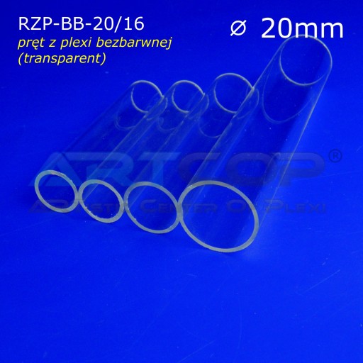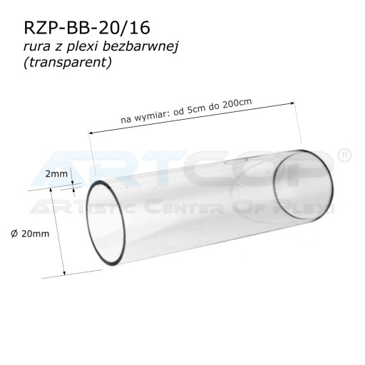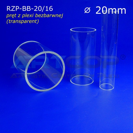 Rura z plexi bezbarwnej, transparentnej o średnicy zewnętrznej 20mm i średnicy wewnętrznej 16mm. Grubość ścianki rury to 2mm.