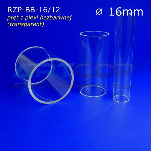 Rura z plexi bezbarwnej, transparentnej o średnicy zewnętrznej 16mm i średnicy wewnętrznej 12mm. Grubość ścianki rury to 2mm.