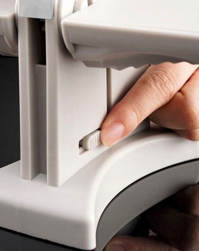 - antypoślizgowe nogi z gumy, które uniemożliwiają ślizganie się maszynki po kuchennych blatach oraz blokada otwarcia