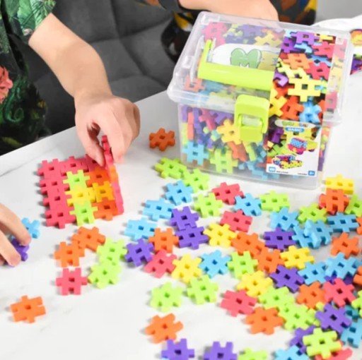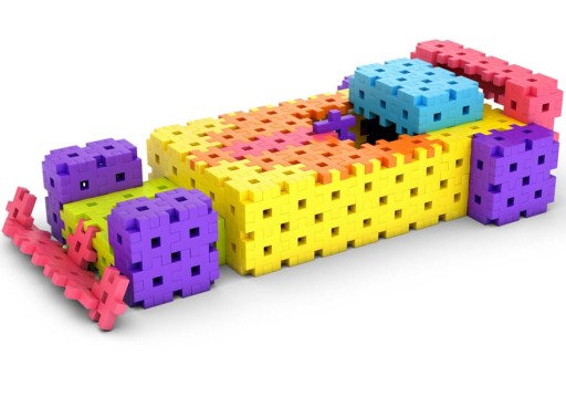 Płaskie, jednolite elementy w przyjemnych kolorach z łatwością można ze sobą łączyć za pomocą specjalnych ząbków umożliwiających budowanie płaskich oraz przestrzennych form.