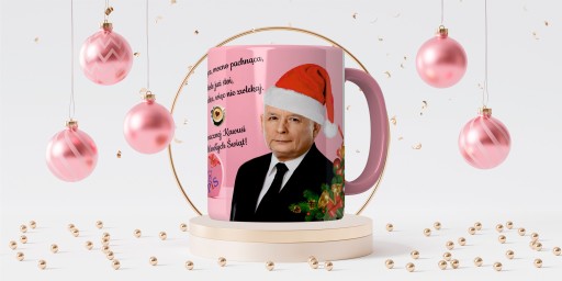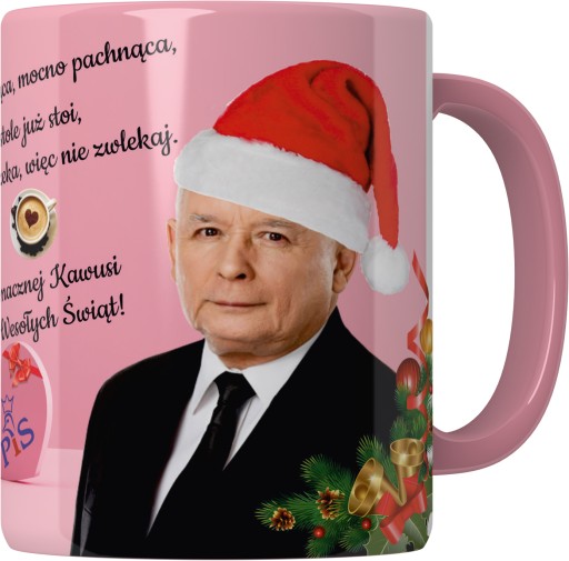 KUBEK KACZYŃSKI MIKOŁAJ MIKOŁAJKI PREZENT POD CHOINKĘ DO KAWY BIURA WIGILIA POLITYCZNY ŚMIESZNY JEhAĆ PIS ŻYCZENIA RÓŻOWY ŚMIESZNY DLA BABCI DZIADKA