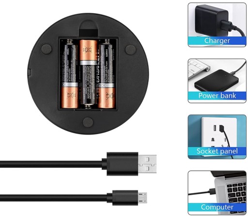 - 2 sposoby zasilania: Ładowanie Połączenie USB lub zainstalowanie baterii. Lampka zużywa niewiele energii jest trwałe i mogą być używane przez wiele godzin.