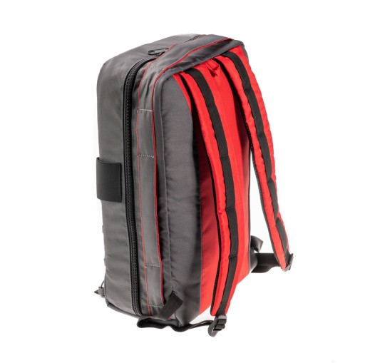 Plecak wykonany jest z najlepszej jakości materiałów, dzięki czemu dobrze się sprawdza nawet w najtrudniejszych warunkach. Struktura włókien Oxfordu, z której jest wykonany, zapewnia dużą wytrzymałość na otarcia i wysoką odporność na działanie warunków atmosferycznych, jej dodatkowym atutem jest to, że jest bardzo lekka. Spiralny zamek główny jest przykryty plisą dodatkowo zabezpieczającą wnętrze plecaka przed działaniem czynników atmosferycznych w postaci kurzu, piasku czy deszczu. Dzięki takiemu rozwiązaniu apteczka w formie plecaka świetnie sprawdzi się przy zabezpieczaniu zarówno rajdów samochodowych na pustyni, jak i zawodów rowerowych w tropikalnym lesie. Przemyślana modułowa konstrukcja ma za zadanie zapewnić maksimum komfortu w stresujących warunkach akcji ratunkowej. Plecak został zaprojektowany tak, aby pomieścić w sobie osiem wybranych modułów TRAUMA KIT.