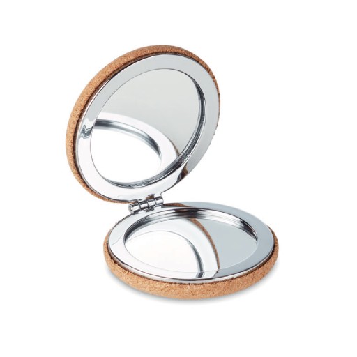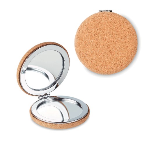 Okrągłe, dwustronne kompaktowe lusterko w obudowie z korka.