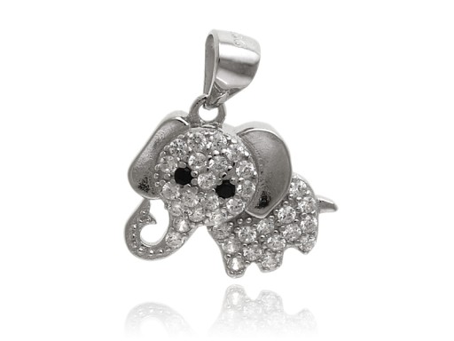 Wisiorek ze srebra, próba 925, słonik lekki i subtelny, ozdobiony cyrkoniami, które ładnie mienią się w świetle. Srebro jest rodowane dzięki czemu jest ono bardziej odporne na działanie powietrza, nie ciemnieje.