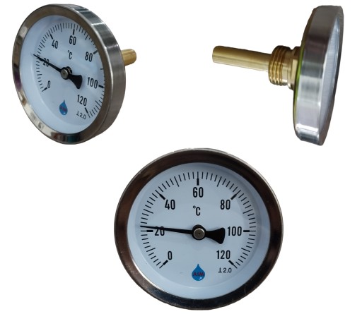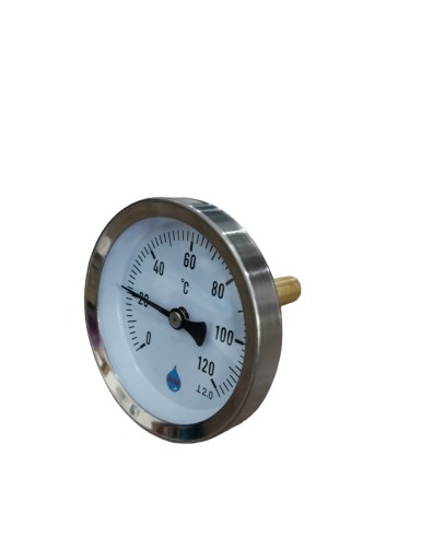 Termometr mechaniczny bimetaliczny tylny, osłona o długości 45mm z gwintem GZ1/2”, zakres pomiarowy 0...120°C, , średnica tarczy 70mm.