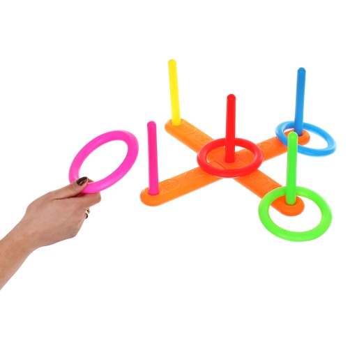 Nasza wyjątkowa gra w rzucane koło to doskonały prezent dla każdego dziecka, które uwielbia wszelkie zabawy ruchowe. To świetny sposób na ciekawe spędzenie czasu w gronie rodziny lub rówieśników. Zestaw składa się z podstawy z 5 kołkami oraz 5 ringów. Zasady zabawy są bardzo proste.