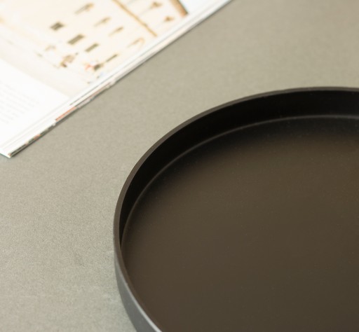 - Ta podstawka, wykonana z tworzywa odzyskanego z recyklingu, łączy w sobie dbałość o środowisko z nowoczesnym designem w kolorze czarnym mat.