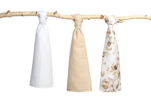 Pieluszki muślinowe są niezbędne w pierwszych miesiącach życia dziecka. Dzięki delikatnej bawełnie nie podrażniają skóry dziecka ani nie powodują alergii. Delikatna tkanina pozwala oddychać skórze niemowlaka, dzięki czemu sprawdzi się nawet w upalne dni. Każdy zestaw zawiera modne wzory w stonowanej kolorystyce, które zestawione razem tworzą unikalny komplet.