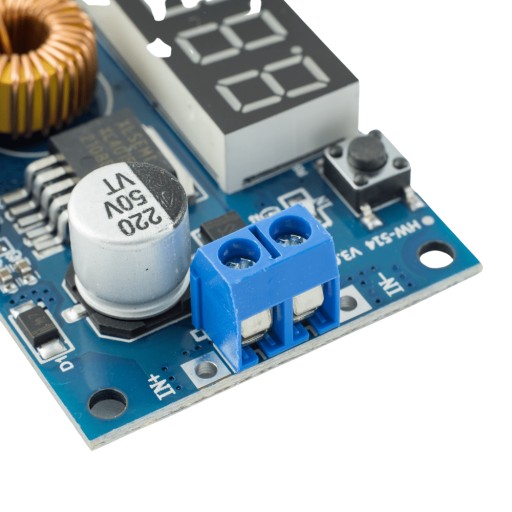 Przetwornica DC-DC zamienia stałe napięcie wejściowe na stałe napięcie na wyjściu. Na wejście przetwornicy możemy podać napięcie już od 5V aż do 38V.