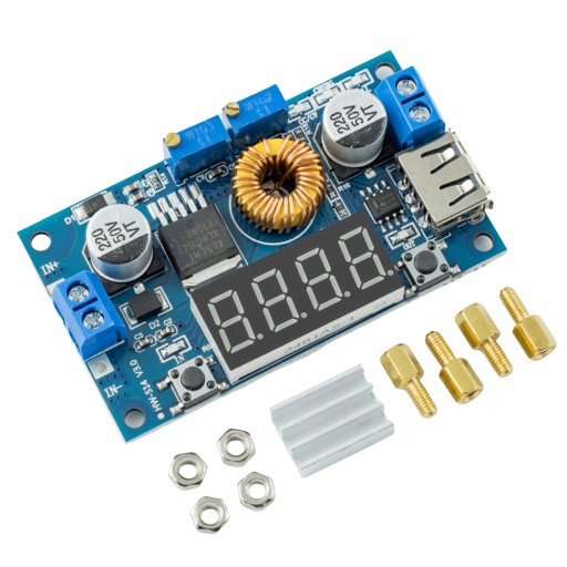 Przetwornica step-down zbudowana jest na znanym i popularnym układzie XL4015 – to jeden z ciekawszych wyborów.