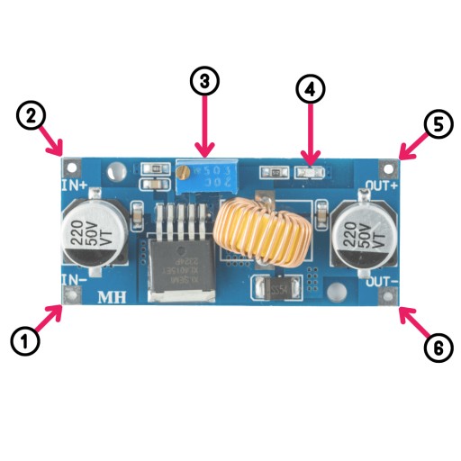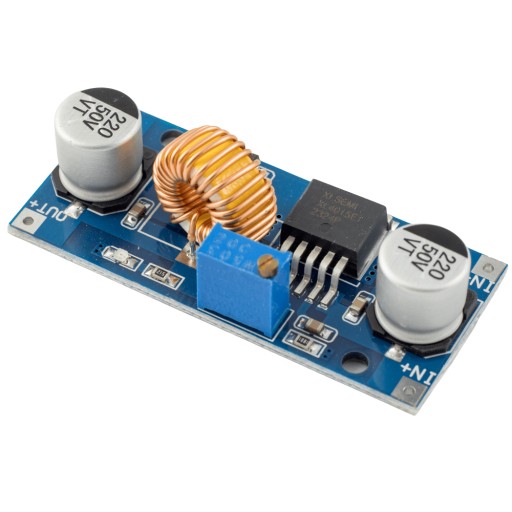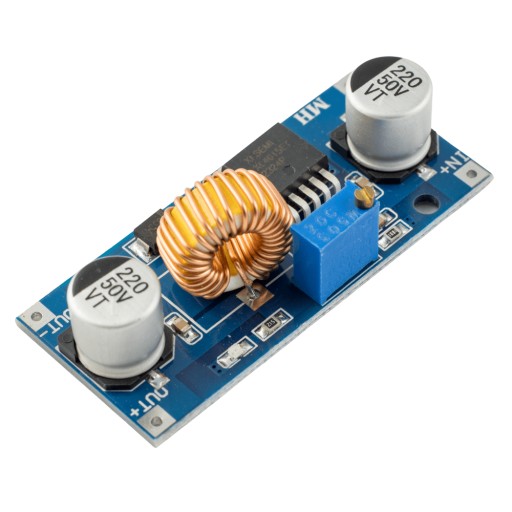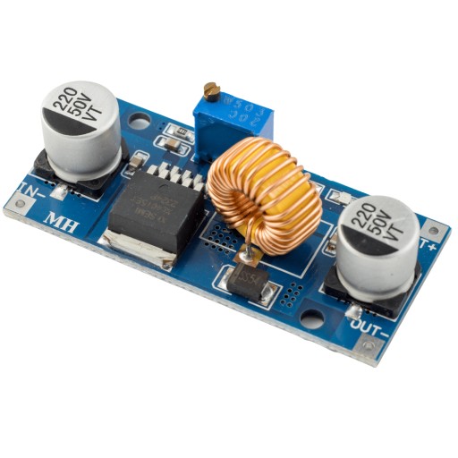 Jest to przetwornica DC-DC, czyli zamienia stałe napięcie wejściowe na stałe napięcie na wyjściu. Na wejście przetwornicy możemy podać napięcie już od 5V aż do 38V.