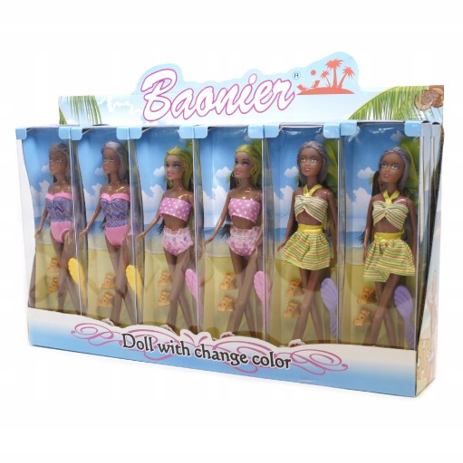 LALKA PLAŻOWA CZARNOSKÓRA zmieniająca kolor 28cm