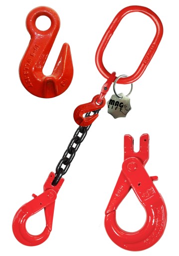 Zawiesie łańcuchowe 1-cięgnowe z ogniwem zbiorczym i hakiem skracającym zakończone hakiem widełkowym bezpiecznym - DOR: 1,12T/1 120 KG