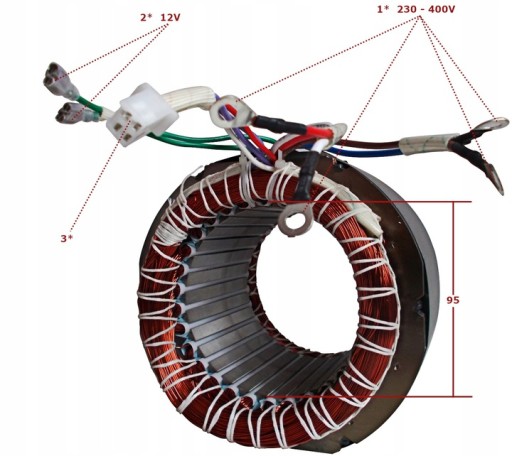 - napięcie: 400V/230V/12Vmontowany w agregatach o mocy prądnicy do: 3000Wotwór pod wirnik: 95mm