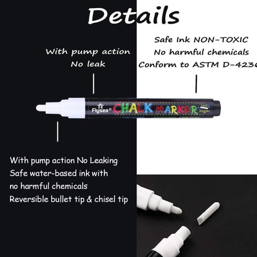 - Obsługuje pisanie na tablicach kredowych, tablicach, tablicach do pisania LED, szybach samochodowych, lustrach, naklejkach, plastiku lub metalu itp.