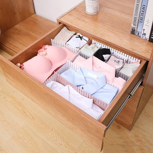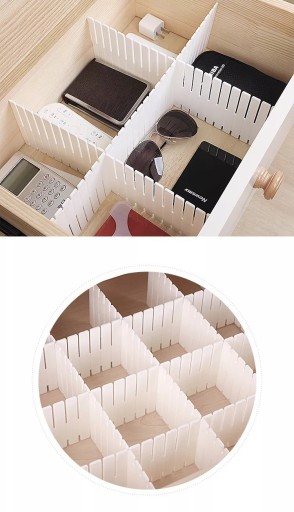 Zestaw 4 sztuk separatorów wykonanych z tworzywa do organizacji przestrzeni w szufladach to łatwy i ekonomiczny patent na wprowadzenie porządku.