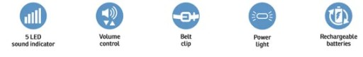 - Wskaźnik natężenia dźwięku - 5 poziomów głośności (2 czerwone / 3 zielone diody LED)