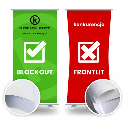 ✅Materiał BLOCKOUT jest znacznie bardziej sztywny i ma idealnie gładką powierzchnię w odróżnieniu do materiału ❌FRONTLIT, który jest używany do banerów i łatwo się zagina i zwija na końcach materiału.