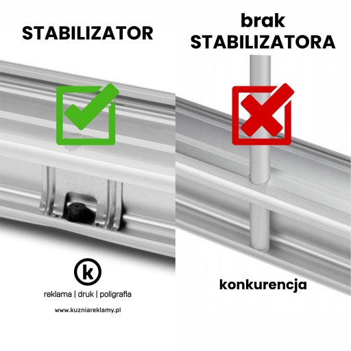 - Dodatkowy stabilizator miejsca mocowania masztu i tylnej ścianki - roll-up stoi idealnie prosto.