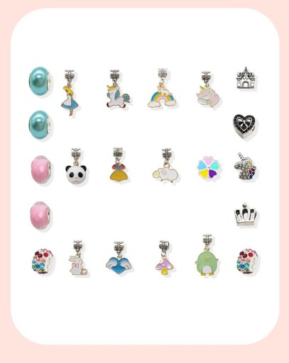 - Twórz odmiany unikalnej bransoletki z urokiem z różnych selekcji uroków i łańcuszków.