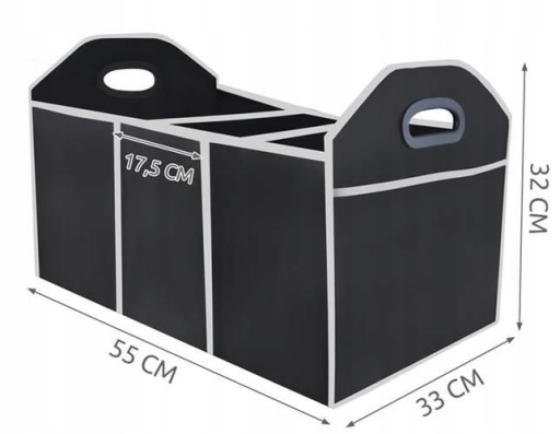 Składany organizer sprawdzi się zarówno w domu do organizacji bielizny, środków czystości, czy ubrań, produktów spożywczych, jak również w bagażniku samochodu do przechowywania niezbędnych akcesoriów. Pozwoli zachować porządek. Po złożeniu zajmuje niewiele miejsca.