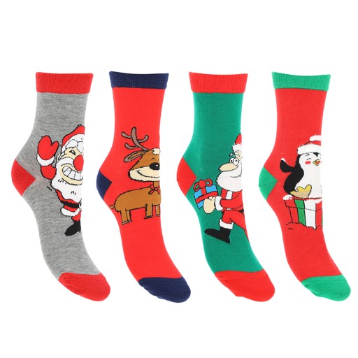 - Cztery pary skarpet w różnych świątecznych wzorach