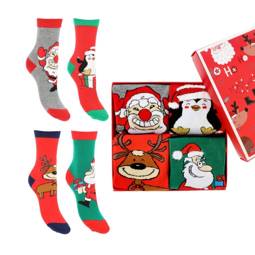 Skarpetki dostępne są w kilku ciekawych wzorach Świątecznych – renifery, bałwanki, Święty Mikołaj.