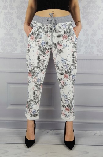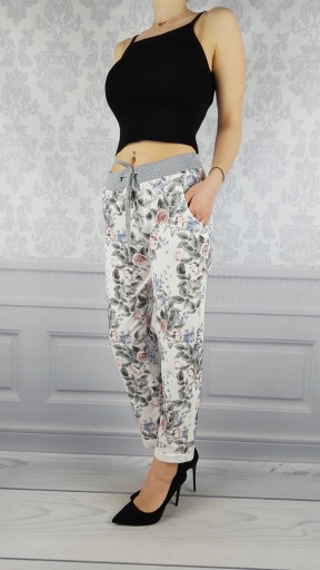 Wygodne spodnie dresowe bawełniane, dzięki swojej uniwersalności, pasują niemal do każdej stylizacji. Elastyczny materiał podkreśla kobiecą sylwetkę. Sprawdzą się idealnie na co dzień, jak i na większe wyjścia. Skomponuj je ze szpilkami oraz bluzką i stwórz zestaw idealny! Podkreśl swoje kobiece kształty! Spraw, by Twój codzienny look był niepowtarzalny. Spodnie po obu stronach posiadają kieszenie.