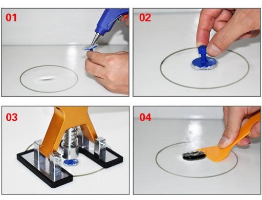Zestaw do usuwanie wgnieceń w karoserii samochodowej wykorzystuje nowoczesną metodę PDR, czyli Paintless Dent Repair. Technika ta opiera się na stosowaniu różnych rodzajów i wielkości końcówek, a także przyrządu Puller. Po użyciu zestawu nie ma konieczności lakierowania reperowanego miejsca.
