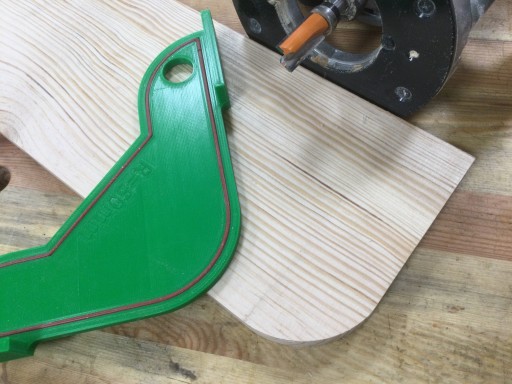 - używając frezu z łożyskiem górnym wyrównaj łuk opierając łożysko o wzornik.