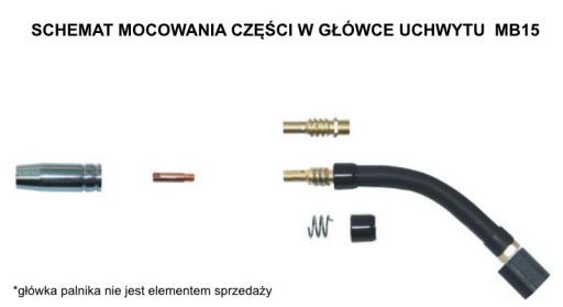ZESTAW CZĘŚCI UCHWYTU DO MIGOMATU MB15: DYSZE GAZOWE, KOŃCÓWKI PRĄDOWE, ŁĄCZNIKI PRĄDOWE, IZOLATORY