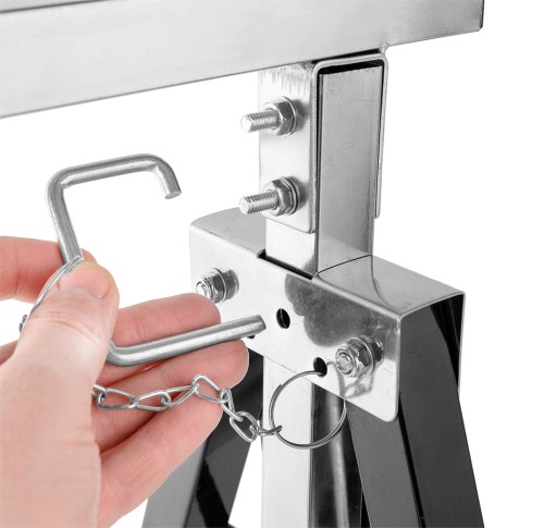 Wyposażona w blokadę, zabezpiecza konstrukcję przed samoistnym złożeniem. Niska waga 4,5 kg umożliwia łatwe transportowanie kobyłki.