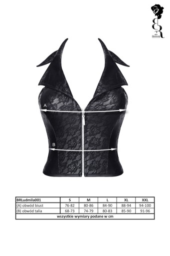 Top wykonany z elastycznego materiału z ozdobnym nadrukiem. Efektowny kołnierz oraz srebrny ekspres z przodu.