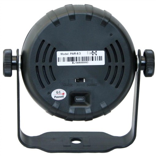 Kompaktowy reflektor z technologią LED. Reflektor posiada 6 diod LED RGB o łącznej mocy 3 watów. Kolory efektu zmieniają się automatycznie, ale istnieje również możliwość kontrolowania zmiany koloru przez rytm muzyki za pomocą zintegrowanego mikrofonu.