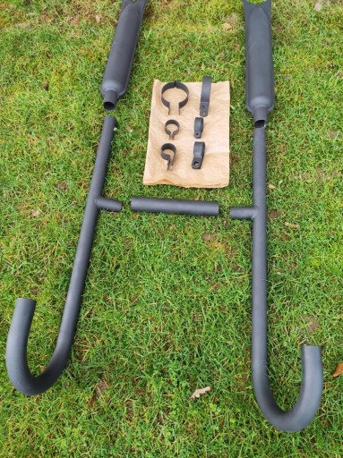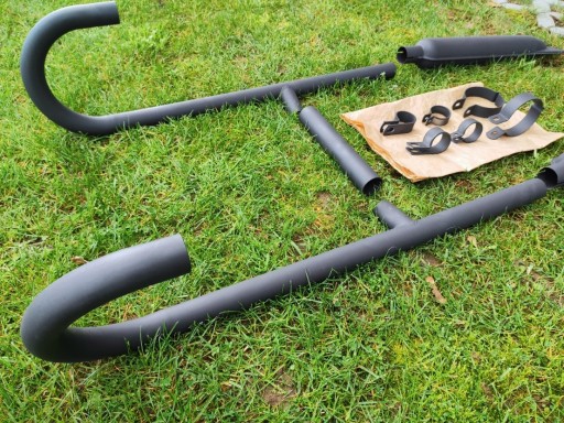Kompletny polski, malowany na czarny mat, układ wydechowy do Urala, kolanka z łączeniem.