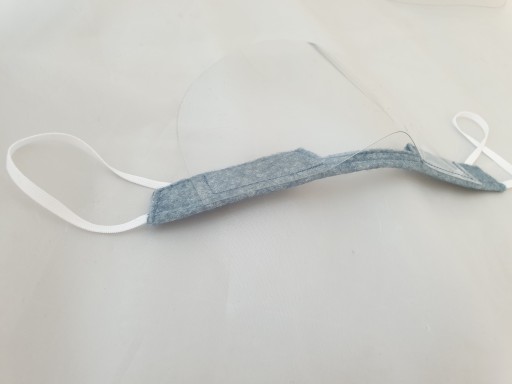 Mini przyłbica na nos na gumce dla dzieci do ok.10 lat . Wykonana z filcu i pleksy. Wszyty drucik usztywniający wokół nosa dzięki któremu można dopasować do twarzy. Nie paruje, można czyścić.