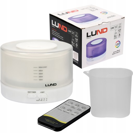 Ultradźwiękowy dyfuzor zapachu z funkcją aromaterapii, który może posłużyć także jako nawilżacz powietrza. Atutem urządzenia jest możliwość ustawienia czasu pracy, koloru światła, trybu pracy oraz rodzaju mgiełki. Pojemność 500ml zapewni aż do 10h ciągłej pracy