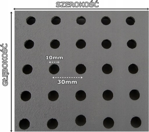 Na zdjęciach, prezentowane są różne rozmiary rusztów. W rusztach o innych wymiarach otwory będą rozmieszczone inaczej.