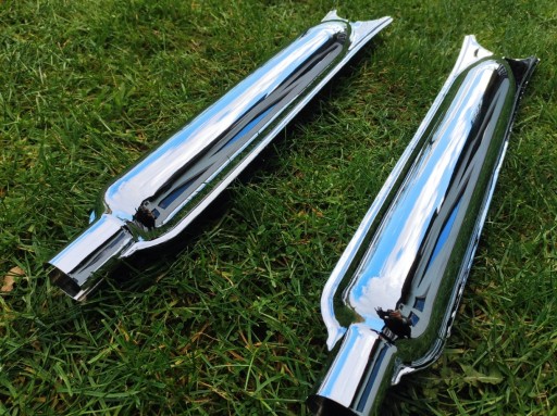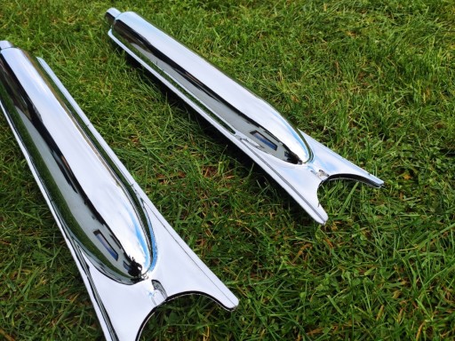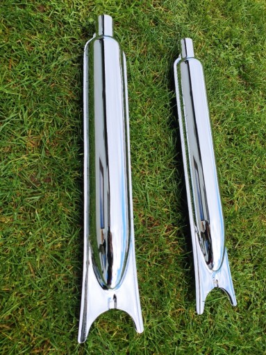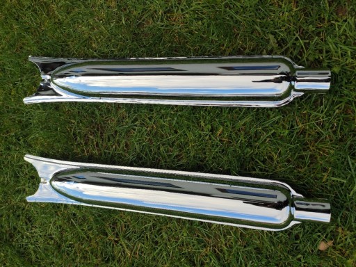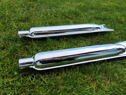 Fabrycznie nowe tłumiki typu "rybki", chromowane do radzieckich bokserów.
