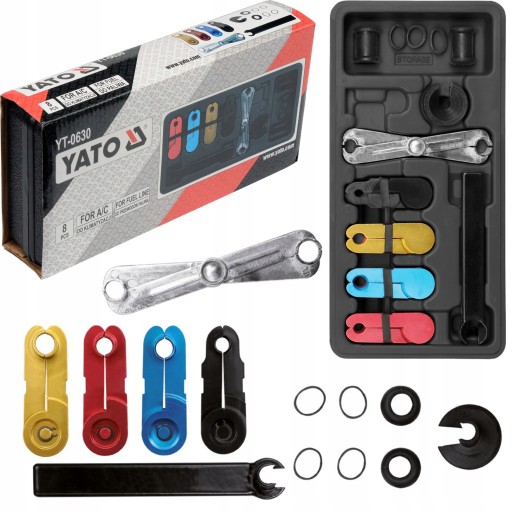 Profesjonalny zestaw renomowanej marki YATO do rozpinania, otwierania złączek systemów paliwowych i klimatyzacji.