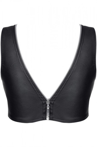 Krótki top z ozdobnym ekspresem odpinanym z przodu i tyłu. Obwodzi on cały dekolt z przodu oraz całe wycięcie na plecach. Zapięcia znajdujące się z przodu i tyłu są ozdobne, ale służą także do regulacji. Dzięki temu rozwiązaniu top jest wizerunkowo i koncepcyjnie unikalny i niepowtarzalny.W całości został wykonany z czarnej, elastycznej ekoskóry z fakturą prawdziwej skóry. Jest miły w dotyku i wspaniale dopasowuje się do ciała.Doskonale pasuje m.in. do spódnicy BRFederica001 - widocznej na zdjęciach.Kolor: czarnyRozmiary: S,M,L,XL,XXLSkład surowcowy: 95% poliester / 5% elastan
